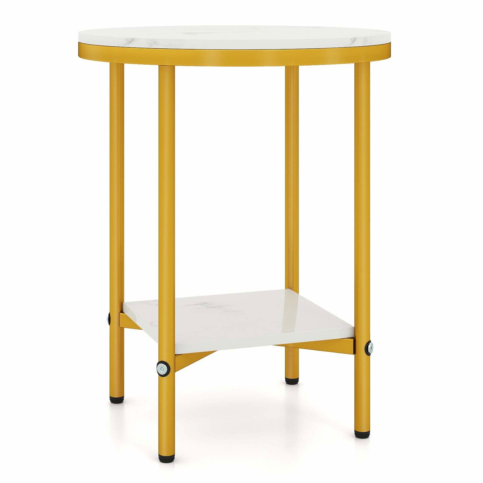 Runt soffbord med 2 våningar – marmorlook, guldram