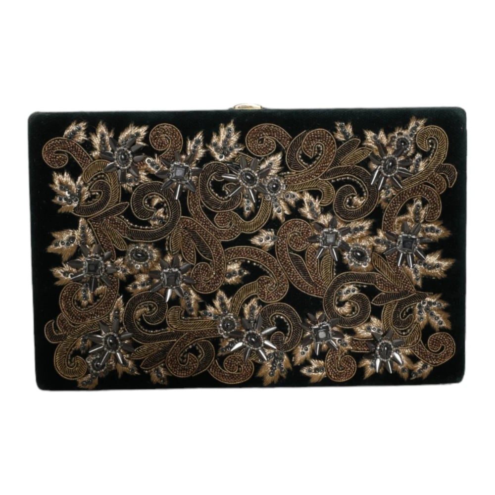 Dolce & Gabbana, Accessoarer , Dam, ONE Size, Läder, Svart Sammet Guldram Clutch Kvällsväska