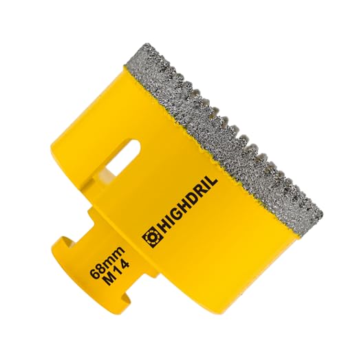 HIGHDRIL Kakel diamantborr 68 mm – M14-gänga diamantborrkrona, hålsåg, kakel för porslin, kakel, keramik, granit, marmor, torrborrning med vinkelslipmaskiner