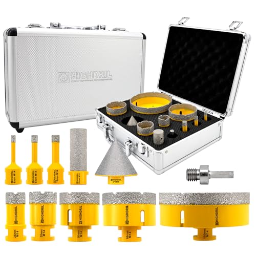 HIGHDRIL Diamantborrkronsats – 6/8/10/20/25/28/32/35/45/50/65 mm diamantborrkrona, hålsåg med trekantskaft, 11 stycken för porslin, keramik, kakel, granit, marmor, torrborrning