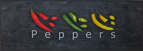 oKu-Tex Kökslöpare, peppar, antracit svart motiv i rött, grönt, gult, köksmatta kort lugg, tvättbar och halkfri, 45 x 125 cm, dekorativ, dörrmatta för kök, 1440623, chili/peppar