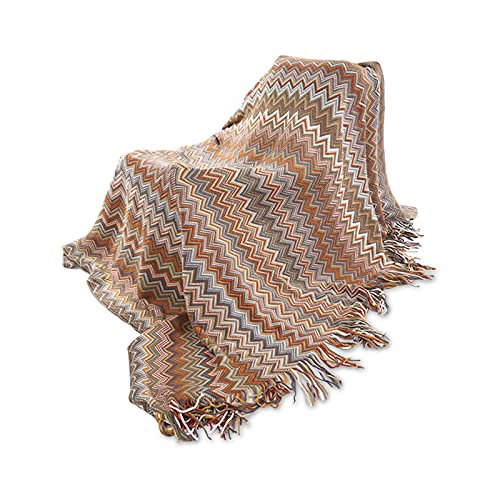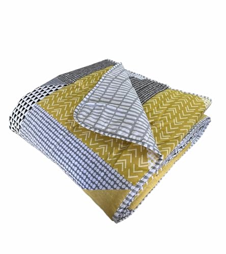 Galatée Högkvalitativ filt med motiv i flera färger, boho, bomull, mysfilt, sängöverkast, soffa, sängöverkast, vardagsrum, överkast (gul, 130 x 160 cm)