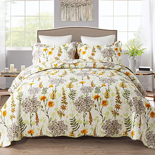 NEWLAKE Sängöverkast set – gul blommönster vändbart mjukt överkast set, king size