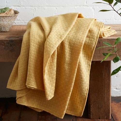 Emma Barclay vaxkaka – återvunnen bomull vanlig våffla texturerad stol soffa set överkast över filt i ockra gul – 70 x 100 (178 x 254 cm)