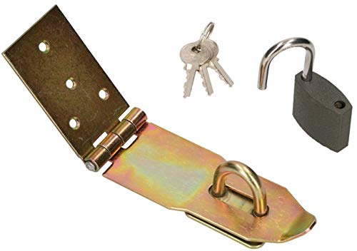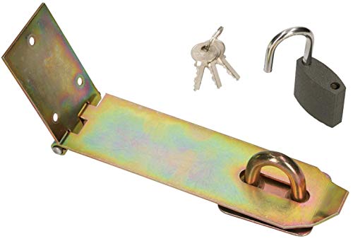 KOTARBAU® Överkast med hänglås, 3 olika storlekar, gul, galvaniserad, bräddavlopp, dörrband, överkast, pansarlås, säkerhetsskydd (120 mm)