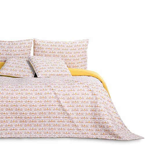 AmeliaHome Överkast, sängöverkast, 260 x 280 cm, dubbelsidig, lättskött quiltning, folkloristiskt växtmönster, gul, vit, orange, folky