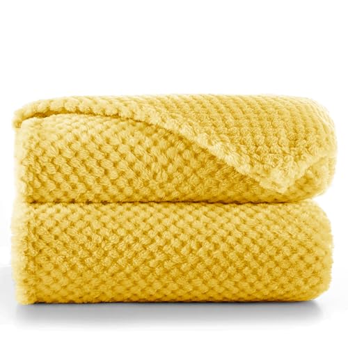 ArtiCasa Fleecefilt 150 x 200 cm – överkast – gosig filt för soffa – 1 person sofföverdrag – dekoration vardagsrum – maskintvättbar – senapsgul – fleece/polyester