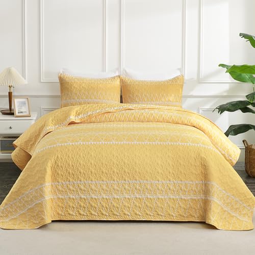Lunoroey överkast king size gul mjuk mikrofiber lätt quiltade sängöverkast överkast överkast alla årstider sängkläder set (1 täcke, 2 örngott)