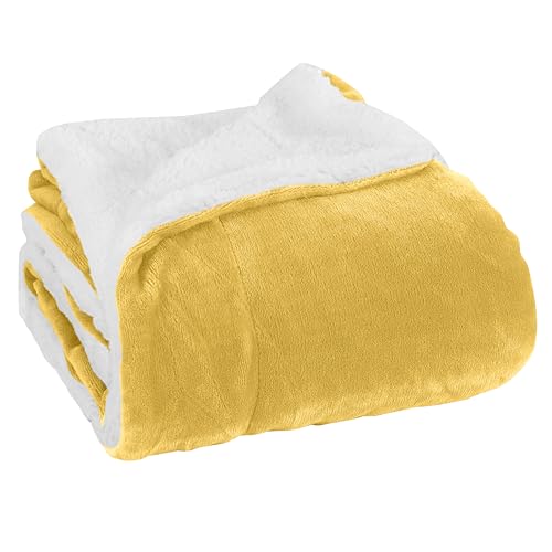 Elegant komfort lyxig ultra-plysch sammet touch fleece överkast mjukt, varmt, mysigt| mikromink sherpa-baksida vändbar filt för säng, soffa och soffa, solid gul