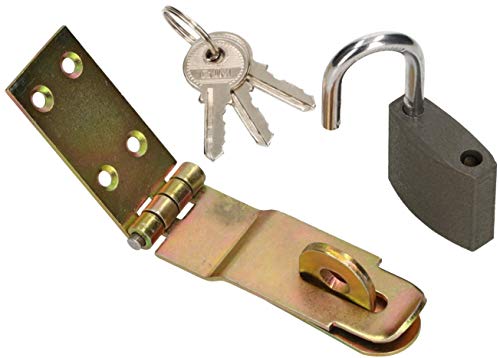 KOTARBAU® Överkast med hänglås, 3 olika storlekar, gul, galvaniserad, överflödesgångjärn, dörrband, överkast, pansarlås, säkerhetsskydd (70 mm)