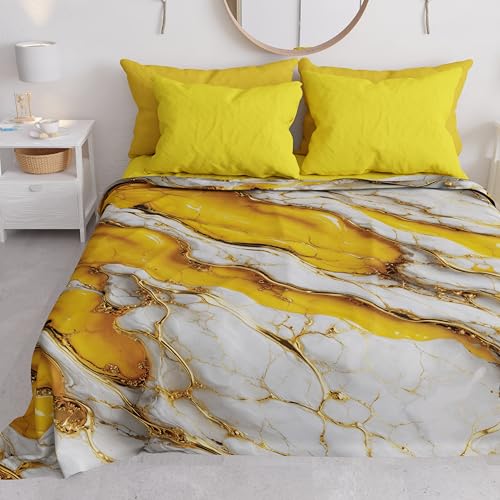 PETTI Artigiani Italiani - Enkel vår sommar överkast, lätt enkelfilt, lakan sängöverdrag, gul marmor, 100% tillverkad i Italien