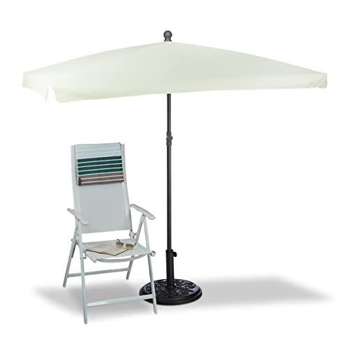 Relaxdays Parasoll rektangulär, 200 x 120 cm, ribba, polyester, lutningsfunktion, trädgårdsparasoll, ljusgul