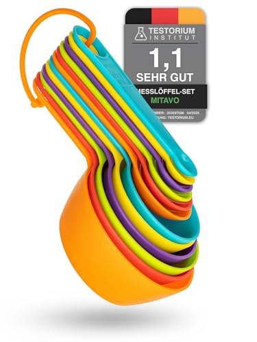 Mitavo 12-delat måttskedset, färgglada måttskedar för matlagning och bakning, med måttangivelser för vätskor och pulver (ml, cups, matskedar, teskedar), stapelbara och diskmaskinssäkra