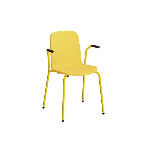 Karmstol Add, helklädd i gult tyg, gult stativ