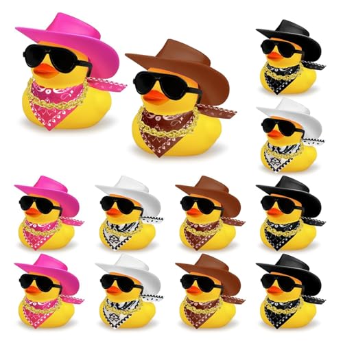 Guidre Cowboy-gummianka, cowboy-gummianka med cowboyhatt solglasögon gyllene kedjor halsduk och cool rekvisita, cowboy anka dekoration för festgåvor, födelsedagar, babyshowertillbehör