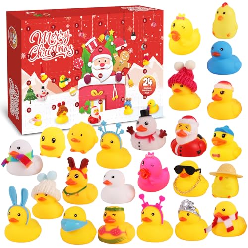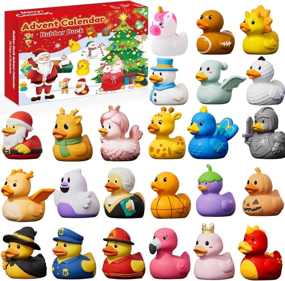 ROMANVIC Adventskalender 2025 barn, badankor, adventskalender 24 stycken ankor, gummianka, julkalender, jul för barn, pojkar, flickor
