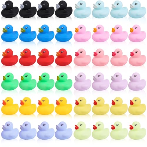 LUTER 48 st gummianka-badleksak för barn, flyta och gnissla mini små färgglada ankor badkar leksaker för dusch/födelsedag/festtillbehör