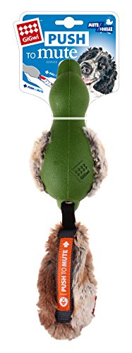 GiGwi Gummianka hundleksak 'Push To Mute' tyst och pipig leksak interaktiv med plysch svans – grön