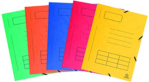 Exacompta 55360E förpackning med 10 samlarmappar manilapapp, gummiband, 3 fällningar, organisationstryck, 355 g, för DIN A4, 10-pack, 5 färger sorterade