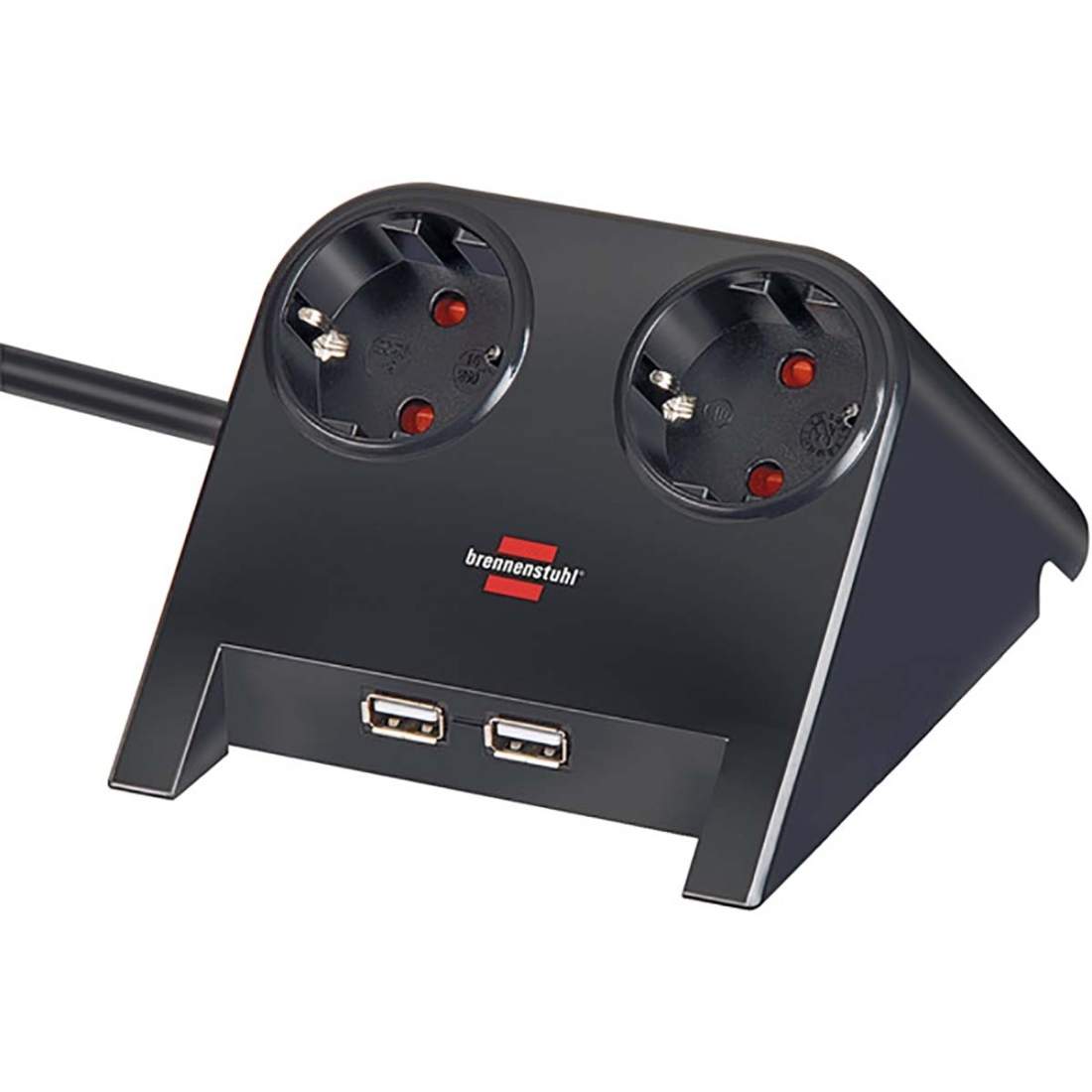 Desktop power 2-vägs uttagslist för bordet med gummifötter och 2-vägs USB 1,80 m Polerad svart TYPE F