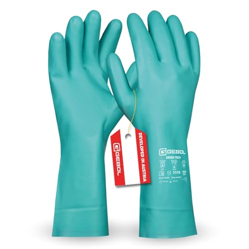 Gebol Green Tech, långa gummihandskar, nitrilhandskar mot kemikalier, syra, olja och fett, vattentäta arbetshandskar för rengöring, trädgård och laboratorium, män, storlek XL (Gr 10), grön, 1 par
