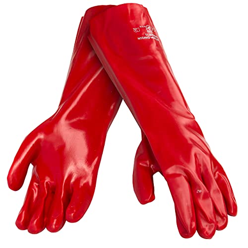 PACIFIC PPE 66 cm gummihandskar, kemiskt resistenta handskar PVC återanvändbara, kraftiga vattentäta handskar med bomullsfoder, halkfri, syra-alkali och olja, X Large