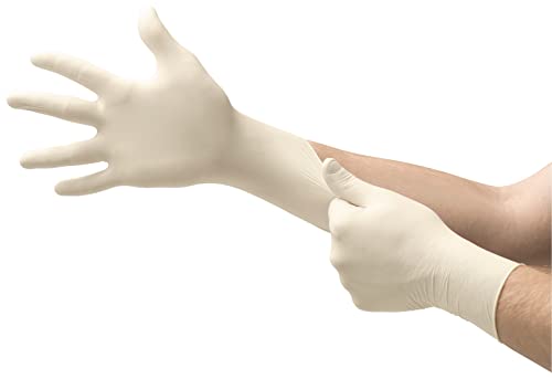 Ansell Microflex 63-864 Latex engångshandskar, Pulverfria gummihandskar, Multifunktionella, Matförberedelser, Rengöring, Kök, Vaktmästare, Kemisk, Mekanik, Vit, S (100 handskar)
