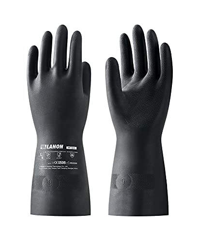 LANON Kemiskt resistenta gummihandskar, återanvändbara kraftiga säkerhetsarbetshandskar, syra- och alkaliskydd, halkfri, stor