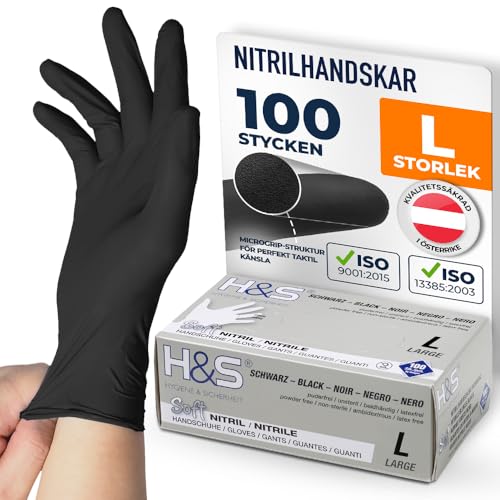 ISC Hygiene & Safety nitrilhandskar L, engångshandskar, engångshandskar, matlagningshandskar mat - 100 stycken storlek 9 stor svart - puderfri latexfri - gummihandskar engångs