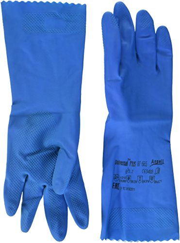 Ansell AlphaTec 87-245 återanvändbara latexhandskar, Multifunktionella gummihandskar, Matförberedelser, Rengöring, Kök, Skyddande vattentäta handskar, För Dam Och Herr, Blå, S (1 par)