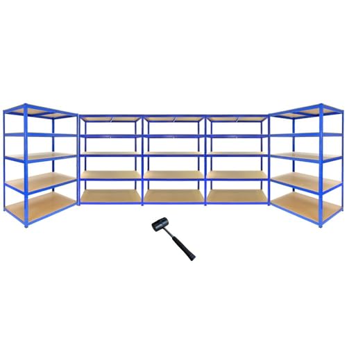 5 x Garagehyllor Extra Stort Skjul Hyllenhet Verkstadshylla Verkstadshyllor Garage Garagehyllor Lager Lagerhyllor Förvaring MDF Bultfritt 120 cm Bred x 60 cm Djup x 180 cm Hög + GRATIS Gummiklubba