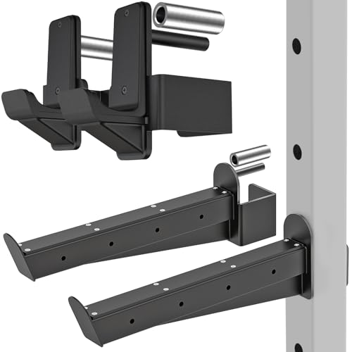 Kipika J-krokar och säkerhetsfläckarmar för 3 tum x 3 tum kraftställ med 5/8 tum eller 1 tum hål – kraftiga skivstångshållare och spärrar med gummikuddar – kraftställ för knäböj, bänkpress och mer