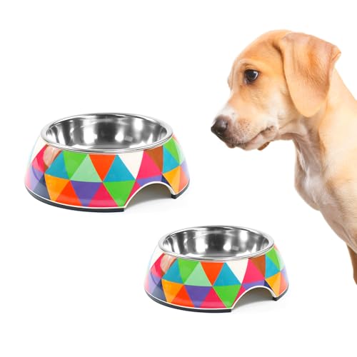 Record Crystal hundskål – rostfritt stål och melamin – utrustad med halkfria gummikuddar – storlek Ø 17,5 cm – kapacitet 350 ml – geometriskt mönster med flerfärgade trianglar