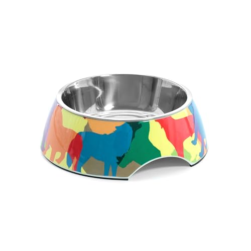 Record Doggies skål för hundar – rostfritt stål och melamin – utrustad med halkfria gummikuddar – storlek Ø 17,5 cm – kapacitet 350 ml – design med hundformer flerfärgad