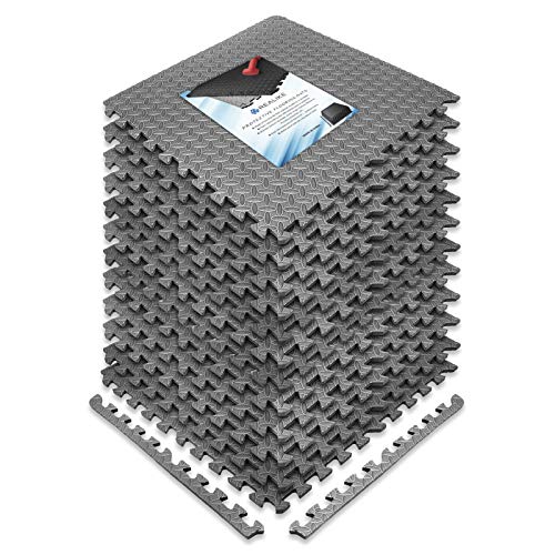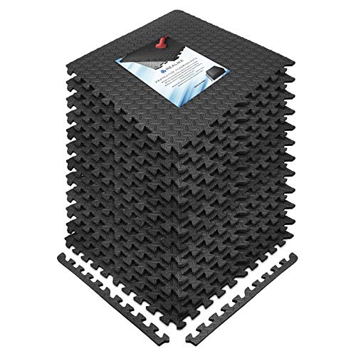 REALIKE Träningsmatta i skum, skyddande golvmatta, EVA, pussel, gummikuddar, sammankopplade plattor, gymmattor för fitness, sport, träning, lek, 60 cm x 60 cm (24 x 24 tum) 12 bitar, svart färg, 4,32 m²