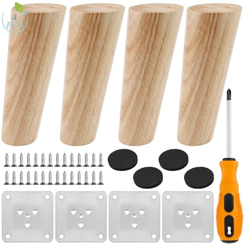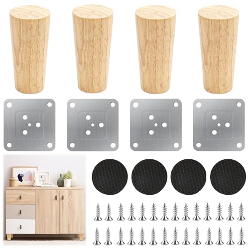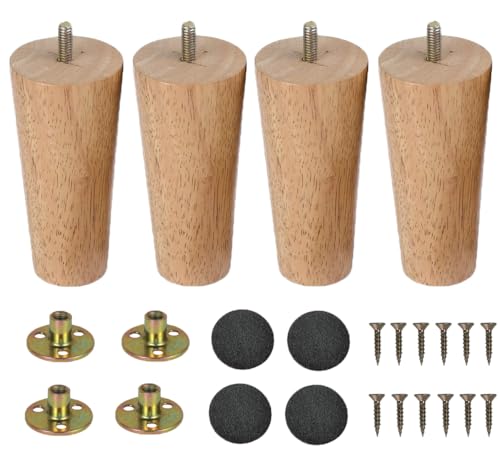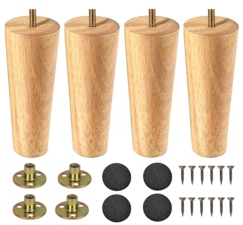 LCOUACEO Möbelfötter, träbordsben, 4 stycken, koniska möbelben, ersättning 15 cm, sofffötter, träben för möbler, skåp, ben, skåpfötter med monteringsplatta, gummikuddar för bord, soffa, säng, skåp,