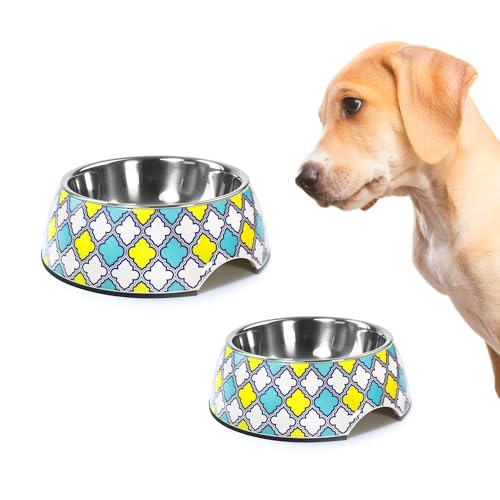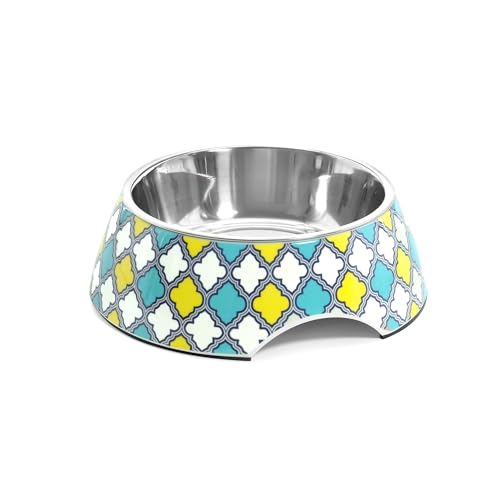Record Majolica hundskål – rostfritt stål och melamin – utrustad med halkfria gummikuddar – mått: Diameter 17,5 cm – kapacitet 350 ml – geometriskt romboidmönster flerfärgad