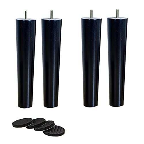 NIANXINN Trämöbler ben, set om 4 svarta, massivt trä, M8 bultar och gummikuddar, ersättningskabelfötter, soffben, för skåp, stol, soffa, sängben, bordsfötter, möbler, hårdvara tillbehör (25 cm)