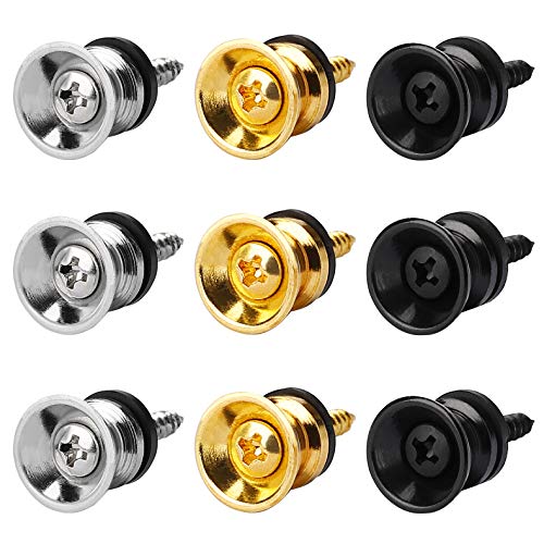 MengH-SHOP Gitarr remknappar ändstift metall gitarr rem låsnål med monteringsskruvar och gummikuddar för akustisk klassisk elgitarr bas ukulele 9-pack (guld, silver, svart)