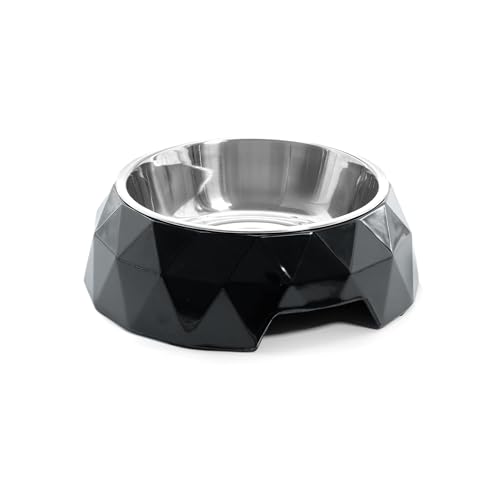 Skiva – Diamanthundskål – rostfritt stål och melamin – avtagbar – utrustad med halkfria gummikuddar – mått: diameter 18 cm – kapacitet 350 ml – färg svart