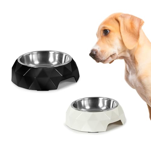 Skiva – Diamanthundskål – rostfritt stål och melamin – avtagbar – utrustad med halkfria gummikuddar – Mått: Diameter 22,5 cm – kapacitet 700 ml – vit
