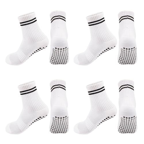 EUPSIIU 4 par fotbollsstrumpor för barn halkfria fotbollsstrumpor för pojkar och flickor, halkfria sportstrumpor för fotboll, träningsstrumpor med gummikuddar för basket, rugby, tennis, löpning, Vitt