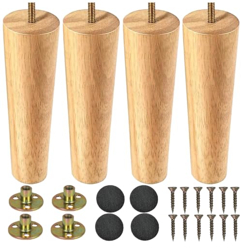 LCOUACEO Möbelfötter, träbordsben, 4 stycken, koniska möbelben, ersättning 20 cm, sofffötter, träben för möbler, skåp, ben, skåpfötter med monteringsplatta, gummikuddar för bord, soffa, säng, skåp,