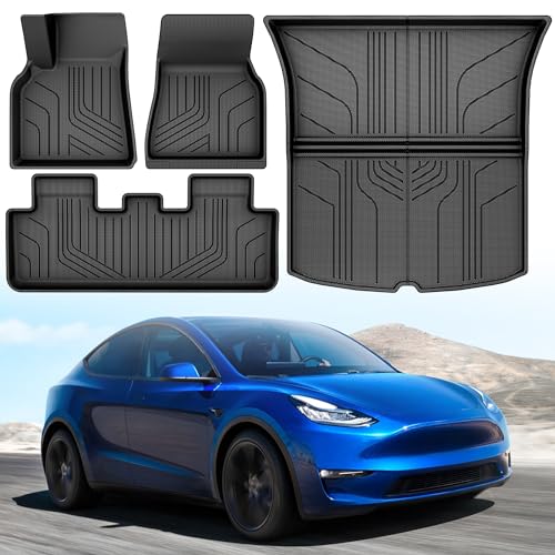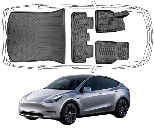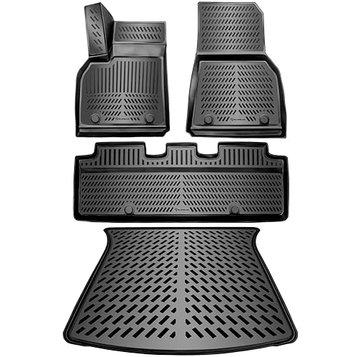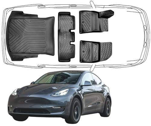 ELMASLINE 3D-gummimattor för Tesla Model Y 2020–2025 | Inklusive en runkmatta! | Extra hög kant | tillbehör golvmattor | passar inte i juniper! !