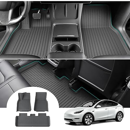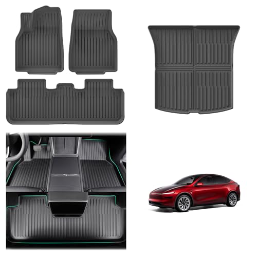 GAFAT Tesla Model Y 2024 2023-2021 Golvmattor, Tesla OEM-Original Model Y Golvmattor TPE Allväders Gummimattor, 3D-Skanning Hög Kant 5–7 CM, med Halkfria Spikar, Tesla Model Y Tillbehör