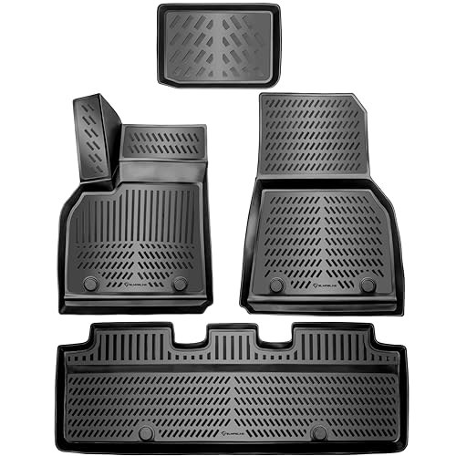 ELEMENT 3D-gummimattor, set lämpligt för Tesla Model Y LR Dual M | årsmodell 2020-> | 100% exakt passform bilgolvmattor, robust universell dörrmatta bil, gummimattor bil, bilgolvmattor gummi