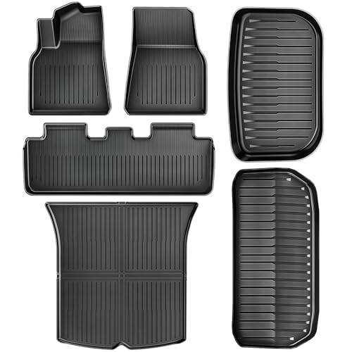 YITAHOME Tesla Model Y golvmattor i set, alla väder halkskydd hög vägg 3D vattentäta gummimattor set med halkfria mattor, kompatibel med modell Y 2024 2023 2022 2021 2020 (6 stycken golvmattor)