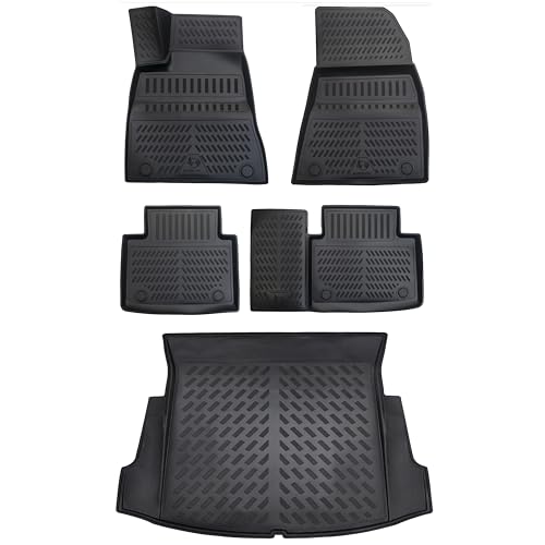 Tesvolution® Golvmattor set gummimattor för Tesla Model Y fram och bak – 2021 + 2022 + 2023 + 2024 – set med bilmattor vattentäta tillbehör