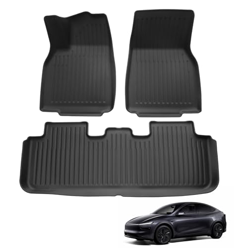 ECOZEN 3D gummimattor för Tesla Model Y 2025 allvädersgolvmattor TPE gummi Golvmattor i bilen, halkfria, vattentäta, miljövänliga, högkvalitativa gummimattor, ingen lukt Tillbehör för Tesla Model Y