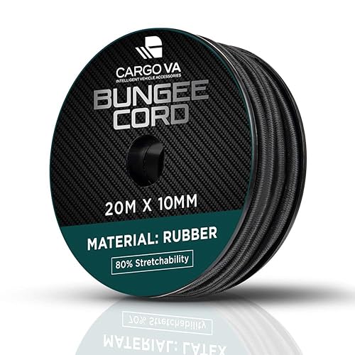 CARGO VA Intelligent Vehicle Accessories CargoVA Gummirep 10 mm 20 m svart - expanderrep 80 % töjning - väderbeständigt spännrep för släpvagnar, solsegel, presenning och mycket mer